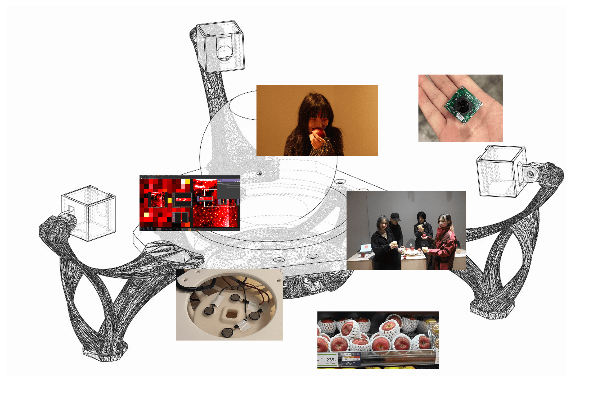 Through this layered mapping process, the apple shifts from a visual object to a sounding body, revealing patterns embedded in its form, color, and weight.